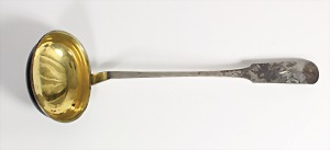 1 Kelle, Silber, Graviert: 19. Febr. 1837, Meister THUN (wohl Belgien), Kelle innen f euervergoldet, L = 38,0 cm, total 214 g