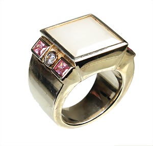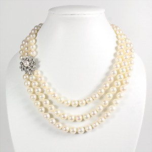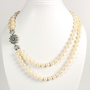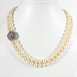 Korallencollier, GG 585/000, aus Koralle geschnittenes Damenportrait im Halbprofil ca. 36,6 x 44,5 mm, ca. 28,0 g schwer, eingerahmt von 52 Brillanten ca. 0,75 ct tw-vsi,rosafarbene Korallenkette (Pazifik), D = 8-8,3 mm, L = 42,5 cm mit 585/000 Kugel-Goldschließe. Mit einer zweiten Kette kann das Collier auch lang getragen werden, D = 8-8,3 mm, Schließe GG 585/000, L ca. 40,0 cm