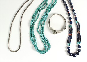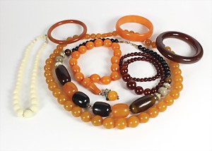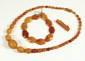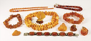 Lot Bernstein: teilweise "BUTTERSCOTCH", 1 Kette, Oliven ca. 5 - 10,3 mm, L = 39,5 cm, ( Schließe defekt); 1 Anhänger (ohne Schlaufe) "BUTTERSCOTCH" ca. 48,0 x 32,5 mm, total 9,7 g; 1 Armband, Silber 835/000, untergebautes Kastenschloss u. Sicherheitsacht, L = ca. 18,0 cm; 2 Armbänder auf Gummizug, 1 kl. Objekt "SCHIFF", H = 4,8 mm (7,3 g); 1 Kette im Verlauf ca. 78,0 cm, 56,0 g, 1 kurze Kette im Verlauf, u. 3 Kleinteile, alles total 188,1 g