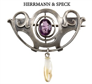 pin, dog, silver 800/000, signed KGS (Karl Gustav Scheid (Vienna), plastic worked dog (black patinated), lenght = 61.5 mm, with contemporary casket !