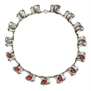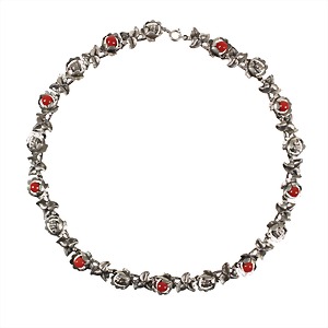 lot: silver jewelry partially with coral, 1 bracelet, all round jeweled with 3 corals, diameter = c. 66.0 mm, 4 rings, ring width c. 53-59, 1 bracelet, lenght = ca.20,5, 1 bracelet, textured pressed sheet metal, width = 15.7 mm, 1 corals necklace, gold filled, yellow gold 333/000 (safety chain), diameter in front = 6.5 mm, lenght = 57.5 cm total 81.1 g unfortunately this item can't be shipped to non-EU countries!