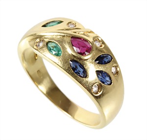 lot: silver jewelry, 925/000, 1 bracelet with colored stones, among others citrine, amethyst, peridot, topaz …and others, box clasp with 2 safety catches, inside c. 61.0 x 49.5 mm, a pair of hoop earrings (oval), height = 29.0 mm, 1 ring, colorless rhinestone, 1 ring, colored drop c. 15.2 x 20.8 mm, 1 ring, rainbow-colored, cross-wise 4 red stones and colorless rhinestone, all rings with a ring width of c. 60, total c. 79.8 g