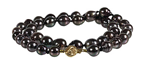 pearl necklace, clasp yellow gold 585/000, drops Tahiti pearls, diameter = 8.0 - 9.8 mm, length = c. 48.5 cm