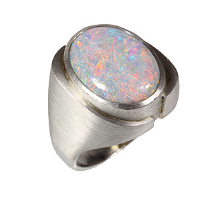 ring, VINTAGE 1970s, platinum, very fine opal cabochon 15.0 x 11.0 mm, c. 8,00 ct (Lightning Ridge Australia), ring head c. 15.5 x 18.5 mm (high structure), ring width c. 56,0, total 20.2 g