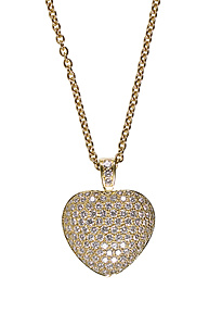 nice classic, necklace with heart pendant, yellow gold 750/000, 124 brilliants c. 2.8-3.0 ct tw-vsi, height = 29.7 mm, trace chain, length = 45.0 cm, total 15.2 g