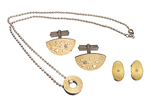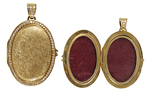 medallion for 2 pictures, yellow gold 750/000, signed MV in a hexagon (Victor Mayer, Pforzheim), 75 pieces 8/8-cut diamonds c. 0.6 ct white, front side satinized, back: polished, c. 29.8 x 50.3 mm, total 25.1 g