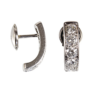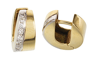 1 Paar Creolen, GG 585/000, 12 Brillanten ca. 0,12 ct tw-vsi/si, im Verlauf, D = ca. 13,0 mm, total 5,3 g