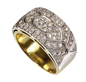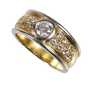 ring, yellow gold/white gold 750/000, central brilliant c. 0.46 ct tw-vsi, at the side 16 brilliants c. 0.64 ct tw-vsi, ring width c. 54, total 9.2 g