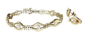lot: a pair of ear studs and 1 bracelet, yellow gold/white gold 750/000, a pair of ear studs with 2 brilliants c. 0.2 ct white/toned white-si/p, height = 15.6 mm, 1 bracelet, 7 brilliants c. 0.40 ct w-si, box clasp with safety catch, length = 18.8 cm, total 23.2 g