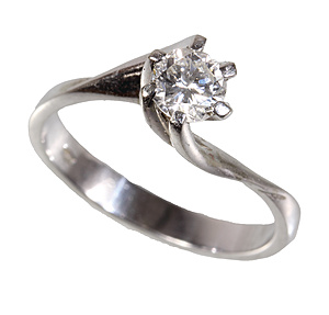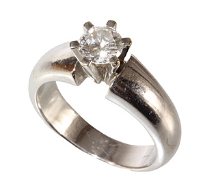 ring, solitaire, white gold 585/000, 1 brilliant c. 0.40 ct tw/w-vvsi, crown is high constructed, ring width c. 52.5, total 2.4 g