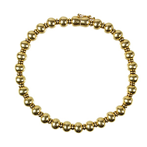 ball bracelet, yellow gold 750/000, balls diameter = 6.1 mm alternating with small eyes, integrated box clasp with safety catch, length = 19.0 cm, total 17.9 g (prolongable with Lot No. 8019, can be worn as long necklace!)