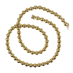 ball chain, yellow gold 750/000, balls diameter = 6.1 mm in alternation with small eyes, integrated box clasp with safety catch, length = 42.8 cm, total 41.2 g (prolongable with lot No. 8018)