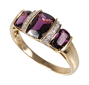 Ring, GG 585/000, zentraler Amethysttropfen ca. 2,0 ct (fac.), 3 Brillanten ca. 0,015 ct weiß, RW ca. 54,5, total 3,9 g