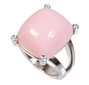 ring, white gold 750/000, signed P in a stylized horse (symbol), decorative andean opal, 4 brilliants c. diameter = 1.6 mm, tw-vsi, ring head c. 16.0 x 19.25 mm, split ring shank, ring width c. 53, total 12.1 g, as good as new !