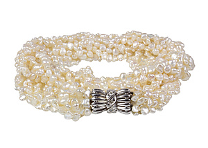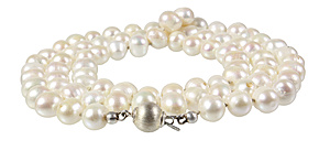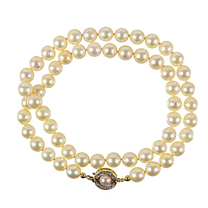Akoja-Perlenkette, GG 585/000, Schließe beidseitig mit Diamanten besetzt, Perlen D = 7,0-7,5 mm, schönes Lüster, L = 44,5 cm