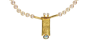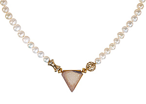 necklace with pendant, white gold 750/000, signed P in a stylized horse (symbol), pendant with decorative andean opal, 4 brilliants c. diameter = 1.6 mm, tw-vsi, height = 27.5 mm, wheat chain, white gold 750/000, length = 55.8 cm (intermediate eyelet at 45.8 cm), total 12.7 g