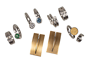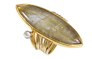 unique-ring by Jutta Schmidt-Roche, Hayingen, yellow gold 750/000, spectrolite-navet (c. 39.0 x 13.2 mm), 1 brilliant c. 0.10 ct tw-vsi, ring width c. 55, total 12.8 g