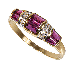 ring, yellow gold 585/000, 3 tourmalines, (rubellite tonneau shaped), 6 pieces 8/8-cut diamonds (white set), ring width c. 59
