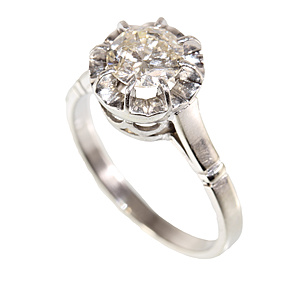 ring, white gold 750/000, central brilliant c. 0.27 ct tw-vsi, in the wreath 6 brilliants c. 1.0 ct tw-vsi, ring head diameter = 11.0 mm, ring width c. 50, total 11.0 g