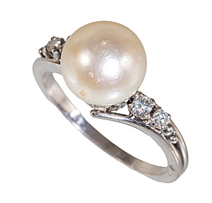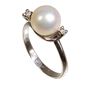ring, white gold 585/000 (tested), 1 Akoya pearl diameter = c. 9.5 mm, 4 pieces 8/8-cut diamonds white, ring width c. 57, total 5.4 g