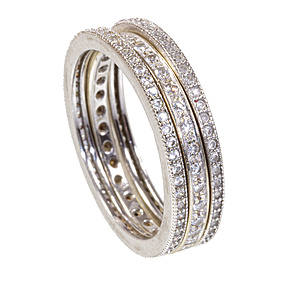 Ring, GG/WG 750/000, zentraler Brillant ca. 0,46 ct tw-vsi, seitlich 16 Brillanten ca. 0,64 ct tw-vsi, RW ca. 54, total 9,2 g