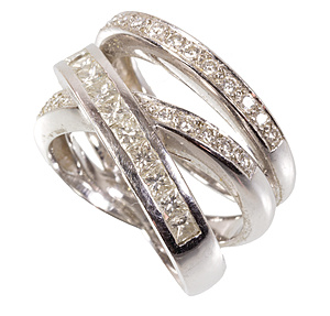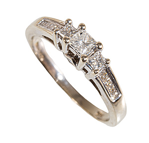 Ring, WG 585/000, 1 zentraler Princess-Diamant ca. 0,23 ct, seitlich 10 weitere Princess-Diamanten ca. 0,22 ct alle w-p , RW ca. 52,5, total 3,2 g