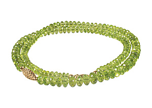 necklace, clasp and intermediate part in yellow gold 375/000, peridot rondels diameter = 5.5-8.0 mm, length = c. 55.0 cm