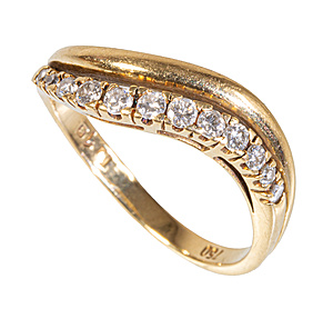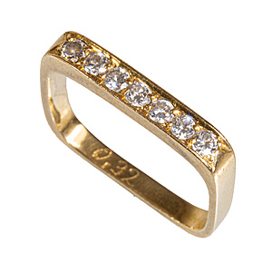 ring, yellow gold 750/000, 7 brilliants c. 0.32 ct (engraved) tw-si, ring width c. 55(rectangular shaped ring shank), total 3.0 g