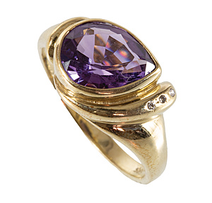 ring, yellow gold 585/000, central amethyst drop c. 2.0 ct (faceted), 3 brilliants c. 0.015 ct white, ring width c. 54.5, total 3.9 g