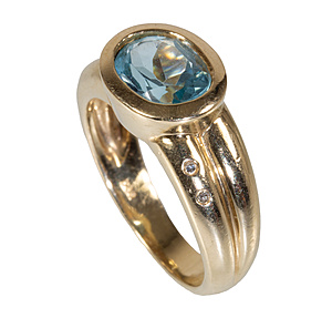 ring, yellow gold 585/000, 1 blue topaz c. 2,1 ct (faceted), 4 small diamonds white, ring width c. 55, total 6.0 g