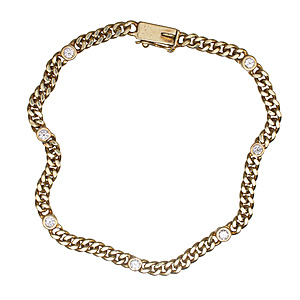 bracelet, yellow gold 585/000, 7 brilliants c. 0.35 ct tw/w-vsi/si, box clasp with safety catch, length = 18.3 mm, total 8.7 g