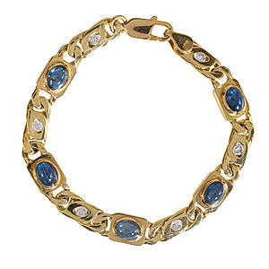 bracelet, yellow gold 750/000, in alternation 5 sapphire cabochon c. 9.5 ct and 6 brilliants c. 0.75 ct, tw/w-si/p in a fantasy-curb chain bracelet worked into, length = 20.3 cm, total 33,.7 g