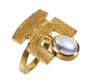 ring VINTAGE, yellow gold 585/000, moonstone cabochon (Ceylon) c. 2.5 ct, ring head c. 25.5 x 20.5, ring width c. 52, unusual structure, total 10.2 g