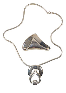 Anhänger, ART-DECO 1920/30 Jahre, Platin (geprüft), 2 Altschliff-Diamanten, 4 Diamantrosen (zentraler Diamant ca. 0,29 ct weiß), Amethystpampel im Briolettschliff, dickbauchig aber elegant geschliffen, Amethyst: H = 42 mm, B = 27,2 mm, T = 16,6 mm, Anhänger H = 57,8 mm; Kette, Silber, L = 45,5 cm, ausdrucksvoller, schlichter Anhänger !