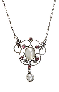 pendant, ART-DECO 1920/30 years, platinum (tested), 2 old cut-diamonds, 4 rose cut diamonds (central diamond c. 0.29 ct white), drop shaped amethyst  with briolette cut, bulbous but elegant cut, amethyst: height = 42 mm, width = 27.2 mm, depth = 16.6 mm, pendant height = 57.8 mm, necklace, silver, length = 45.5 cm, expressive, plain pendant !