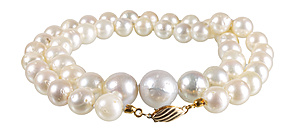 Südsee-Perlenkette im Verlauf, Schließe GG 585/000 (Kalotten ?), Perlen D = 9,0-13,0 mm, L = 52,0 cm