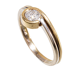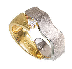 Ring, GG 750/000, PLATIN 950/000, zentraler Brillante 0,10 ct tw-if (lupenrein), RW 55, total 11,0 g