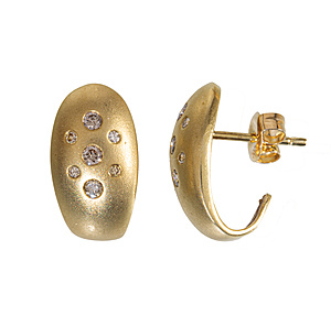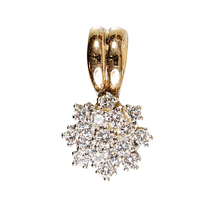 Fine pin, ART-DECO 1930's, GG 585/000, central EAR, plastically worked, discreetly enameled and set with 38 white diamond roses, L = 52,2 mm, unusual !