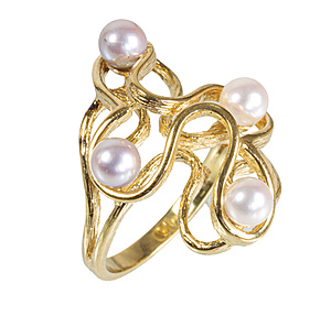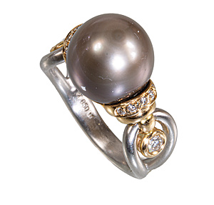 Ring, WG 585/000, zentrale Akoja-Perle D = 8 - 8,5 mm, Stck. 8/8-kant Diamanten 0,11 ct w-si, RW 52, total 4,2 g