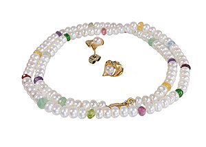 Necklace, SILVER gold-plated, freshwater pearls (D = 9.5-10.5 mm) with onyx rods, gold-plated lenses in between, L = 49.0 cm