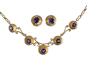 Brooch, JUGENDSTIL, ENGLAND circa 1900, SILVER. signed CH (CHARLES HORNER), purple cabochon (amethyst?), green-yellow translucent enamel, approx. 32.6 x 13.0 mm