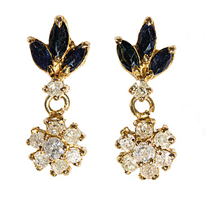Ring, GG 585/00, 6 Saphire in Navetteform u. 5 runde Saphire (alle facettiert), im Kranz 22 Diamanten weiß, Ringkopf ca. 14,0 x 26,6 mm, RW ca. 52,5