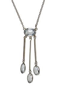 Necklace, ART-DECO 1930s/40s; SILVER, oval aquamarine approx. 1.2 ct (fac.), 3 small suspended aquamarines, front: H = 44.0 mm, L = 42.5 cm