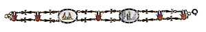 Doppelreihiges Armband, ägyptisierend 1920/30er Jahre, TOMBAK, verg. (berieben), mehrfarbiges Emaille , 2 verzierte ovale Platten, B = 15,7 mm, als Zwischenglieder ANKH-Symbol, L = ca. 20,0 cm