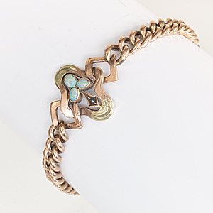 Armband, JUGENDSTIL um 1900/10, GG 333/000, 3 Opale mit schönem Farbspiel, 1 Stck. 1/2 Perle, Kastenschloss mit Sicherheitskettchen, L = 18,2 cm, total 9,8 g, mit Schatulle !