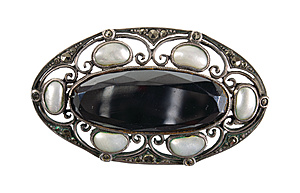 Lot of garnet jewelry: GG 333/000, 1 pendant, H = 29.0 mm; 1 pin/brooch, L = 52.6 mm, total 6.7 g