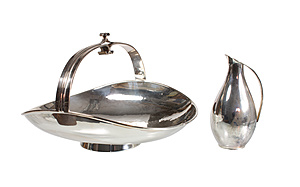 Lot: pastry/fruit bowl with handle, SILVER 835/000, signed E...KS, approx. 21.5 x 17.5 x 13.0 cm; small vase, SILVER, 835/000, sig. HB in escutcheon, beautifully designed mid 20th century, h = 10.6 cm, total 404.7 g