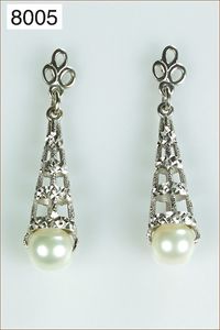 Ohrhänger durchbrochen, 585/000 Weißgold, Zuchtperle