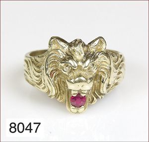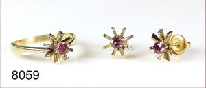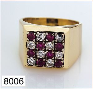 Schwerer Ring GG 585/000, gesamt 9 g, je 8 Brillanten, weiß mittlere Qualität, gesamt ca. 0,5 ct und je 8 Rubine, gesamt ca. 0,28 ct, RW ca. 53