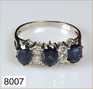 Ring WG 585/000 mit 4 Brillanten, weiß, P1, gesamt ca. 0,32 ct und 3 Saphire oval, gesamt ca. 2,0 ct, RW ca. 53